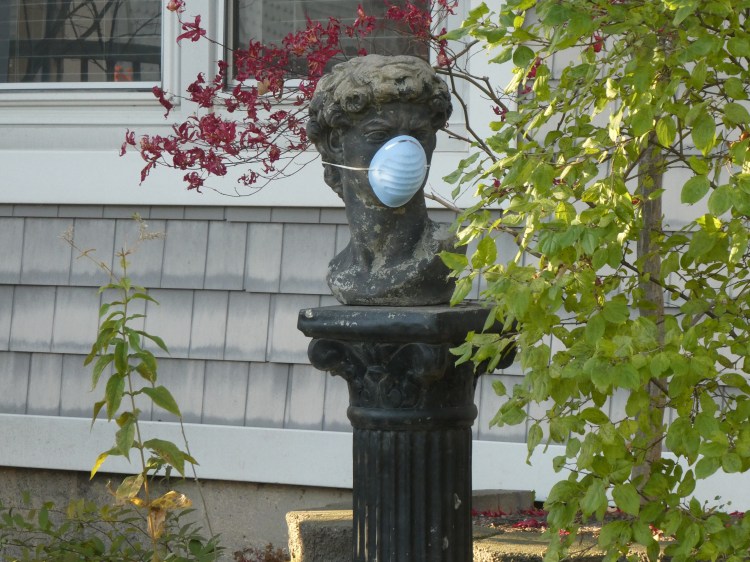 We headed back into town for a small bite to eat, thankful that it was warm enough for outdoor dining (low risk tolerance travelers that we are). Still looking for photo opportunities, so we took a different neighborhood road back, and were ambushed by this highly committed neighboorhood watch member: